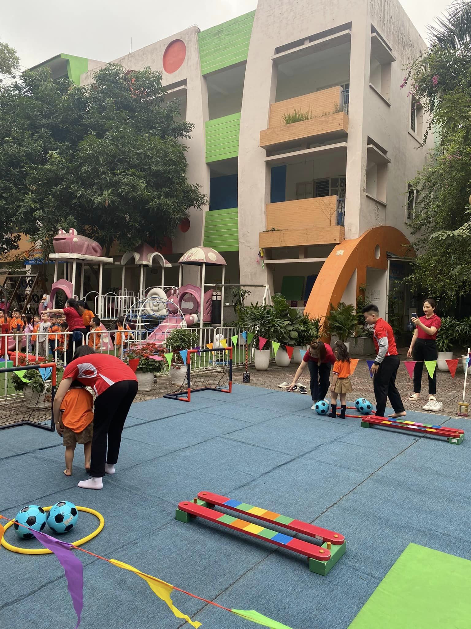 🌹Các bé hào hứng bước vào ngày hội Ngày hội Olympic thể thao với phần khai mạc: màn rước cờ Tổ quốc và cờ Olympic, chào cờ, châm đuốc Olympic, cô hiệu trưởng phát biểu khai mạc ngày hội, đồng diễn bài vận động... cùng nhiều hoạt động thể thao và trò chơi vận động hấp dẫn như: Chiếc dù sắc màu, Vượt chướng ngại vật, Hockey thần tốc, Cuộc đua ném bóng rổ, Cú sút siêu đẳng, trải nghiệm liên hoàn.